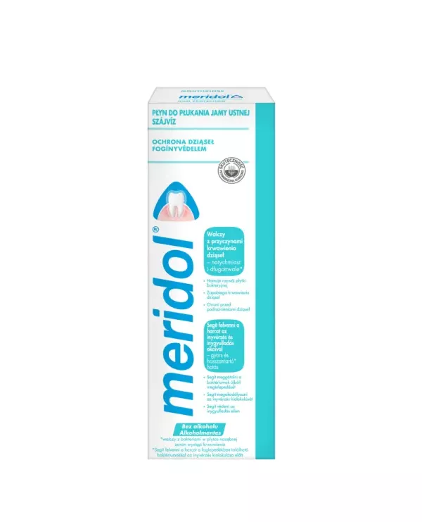 Klinicznie udowodnione: do 68% mniej gromadzenia się płytki nazębnej dzięki płukaniu jamy ustnej produktem meridol®. (W porównaniu do stosowania wyłącznie pasty do zębów z fluorem 1400 ppmF. Hamad CA, et al. Badania prezentowane podczas EuroPerio 2015.), Pomaga walczyć z przyczynami zapalenia dziąseł., Pomaga walczyć z krawieniem dziąseł., Antybakteryjne składniki dla zdrowszych dziąseł., Ochrona i redukcja bakterii na linii dziąseł., Delikatność balsamu i skuteczna walka z płytką nazębną., Bez alkoholu., Skuteczność potwierdzona klinicznie.