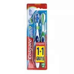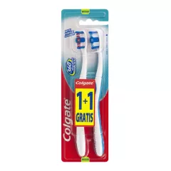 Colgate 360° Whole Mouth Clean Szczoteczka do zębów miękka SOFT 2 sztuki Szczoteczka do zębów ze zróżnicowaną długością włókien i gumkami polerującymi zęby. Usuwa bakterie z 4 stref - zębów, policzków, języka i dziąseł. Cechy Usuwa z jamy ustnej ponad 151% więcej bakterii w porównaniu ze...