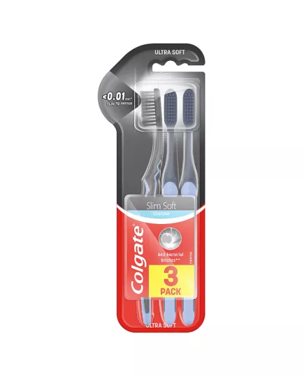 Colgate Slim Soft Charcoal Szczoteczka do zębów miękka SOFT z węglem aktywnym 3 sztuki
