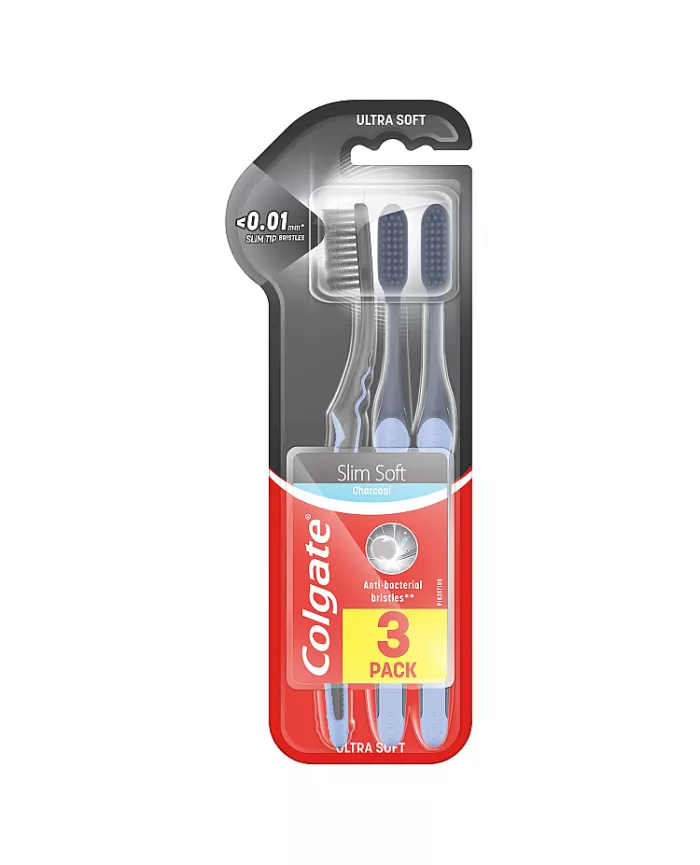 COLGATE SLIM SOFT CHARCOAL SZCZOTECZKA DO ZĘBÓW MIĘKKA SOFT Z WĘGLEM AKTYWNYM 3 SZTUKI