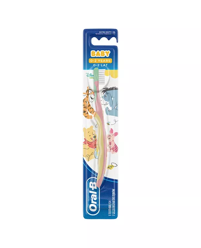 Szczoteczka do zębów Oral-B Baby to pierwsza szczoteczka Twojego dziecka. Dentyści zalecają, aby rodzice zaczęli szczotkowanie zębów u niemowląt z chwilą pojawienia się pierwszego zęba. Ta szczoteczka do zębów dla dzieci została wyposażona w wyjątkowo miękkie włókna oraz końcówkę, która pokrywa duże powierzchnie i delikatnie masuje dziąsła. Ergonomiczna końcówka przeznaczona dla dłoni rodzica została wyposażona w antypoślizgowy uchwyt oraz miejsce na kciuk, które zwiększa kontrolę nad szczotkowaniem. Idealna dla dzieci w wieku do 2 lat.