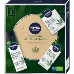 Dane produktowe Zestaw kosmetyków męskich Nivea MEN Sensitive PRO Wyjątkowy zestaw upominkowy NIVEA MEN. Twój mężczyzna codziennie stawia czoła wielu wyzwaniom, wybierz dla niego produkty do pielęgnacji, które zawierają 100% organiczny olej z nasion konopnych. Formuła minimalizuje stres...