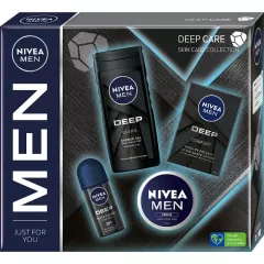 Dane produktowe Zestaw dla niego Nivea MEN Deep Care Zestaw dla mężczyzn zawiera kosmetyki z linii NIVEA MEN Deep o głębokich, męskich zapachach, stworzone z myślą o pielęgnacji i ochronie skóry. Antybakteryjne formuły z aktywnym węglem chronią skórę i głęboko ją oczyszczają, zapewniając...