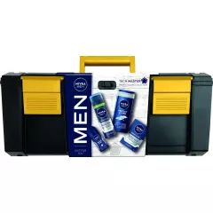 Dane produktowe Zestaw kosmetyków dla mężczyzn Nivea MEN Tech Master Szukasz zestawu kosmetyków dla mężczyzn, który wywoła na twarzy bliskiej osoby szczery uśmiech? Podaruj mu zestaw NIVEA Tech Master w stylowej i przydatnej skrzynce na narzędzia! Zestaw kosmetyków dla mężczyzn zawiera aż 4...