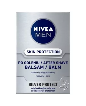 Balsam po goleniu NIVEA MEN Silver Protect posiada lekką formułę wykorzystująca najnowsze osiągnięcia technologii w pielęgnacji skóry. Został wzbogacona o jony srebra, rumianek i prowitaminę B5, dzięki czemu nie tylko skutecznie orzeźwia skórę po goleniu, ale również ją pielęgnuje i wspomaga odnowę dla podrażnionej goleniem skóry. Ma właściwości antybakteryjne: specjalna formuła z jonami srebra, jak naukowo udowodniono, powstrzymuje rozwój bakterii i dzięki temu pozwala Ci zatrzymać uczucie świeżości na dłużej. Balsam po goleniu nie pozostawia lepkiej warstwy, szybko się wchłania i daje Ci natychmiastowe orzeźwienie. Tolerancja dla skóry potwierdzona dermatologicznie.