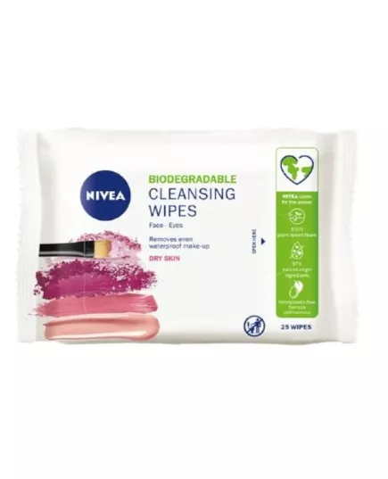 NIVEA® 3w1 Łagodzące biodegradowalne chusteczki do demakijażu skutecznie usuwają nawet wodoodporny makijaż, pozostawiając Twoją skórę dokładnie oczyszczoną i nawilżoną. Są łagodne dla delikatnej skóry wokół oczu. Twoja skóra jest czysta, wygląda zdrowo i pięknie. Chusteczki wykonane są z włókien roślinnych, formuła pozbawiona jest mikroplastiku**, a opakowanie jest przyjazne dla środowiska. Do cery suchej i wrażliwej. Przebadany dermatologicznie i okulistycznie. *zawiera 97% składników pochodzenia naturalnego zachowujących ponad 50% swojej struktury molekularnej (stanu naturalnego) po przetworzeniu, włącznie z wodą. **zgodnie z definicją UNEP