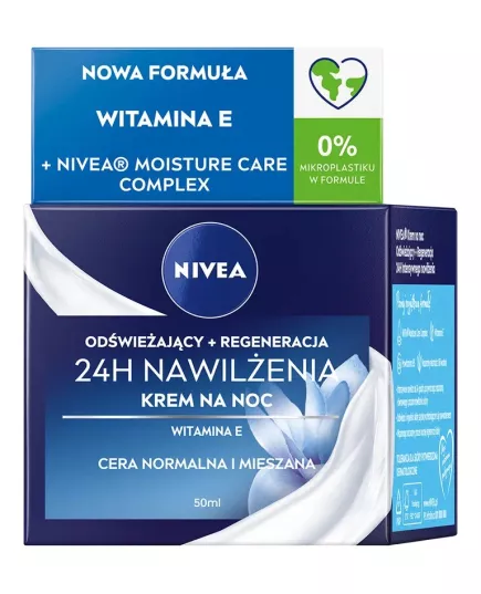 Nivea 24H Nawilżenia Odświeżający krem na noc cera normalna i mieszana 50 ml