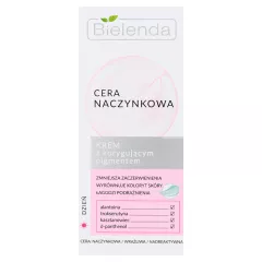 Dane produktowe Bielenda Cera naczynkowa Krem z korygującym pigmentem na dzień 50 ml Bielenda Cera naczynkowa to specjalistyczna linia wyróżniająca się precyzyjnym podejściem do widocznych zmian naczynkowych. Opracowana formuła składa się ze skutecznych substancji aktywnych, które w...