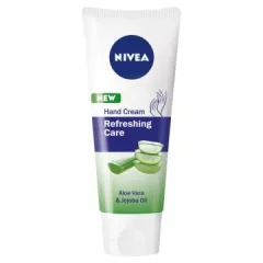 Dane produktowe Nivea Soothing Care Krem do rąk 75 ml Zadbaj o pielęgnację dłoni z kremem do rąk NIVEA Soothing Care! Formuła z ekstraktem z aloesu i olejkiem jojoba długotrwale łagodzi suchą skórę dłoni i szybko się wchłania. Krem do suchych dłoni warto zawsze mieć przy sobie, w torebce...