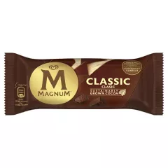 Dane produktowe Magnum Classic Lody 110 ml Składniki: odtworzone odtłuszczone MLEKO, cukier, woda, tłuszcz kakaowy¹, miazga kakaowa¹, tłuszcz kokosowy, syrop glukozowy, syrop glukozowo-fruktozowy, pełne MLEKO w proszku, preparat serwatkowy (MLEKO), tłuszcz MLECZNY, emulgatory (E471,...