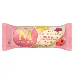 Dane produktowe Magnum Euphoria Pink Lemonade Lody 90 ml Składniki: odtworzone odtłuszczone MLEKO, cukier, tłuszcz kakaowy¹, woda, syrop glukozowy, przecier malinowy (5,5 %), odtłuszczone MLEKO w proszku, sok cytrynowy z soku zagęszczonego (4 %), tłuszcz kokosowy, sok malinowy z soku...