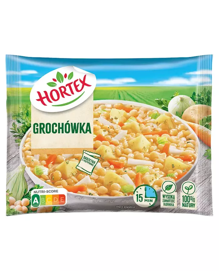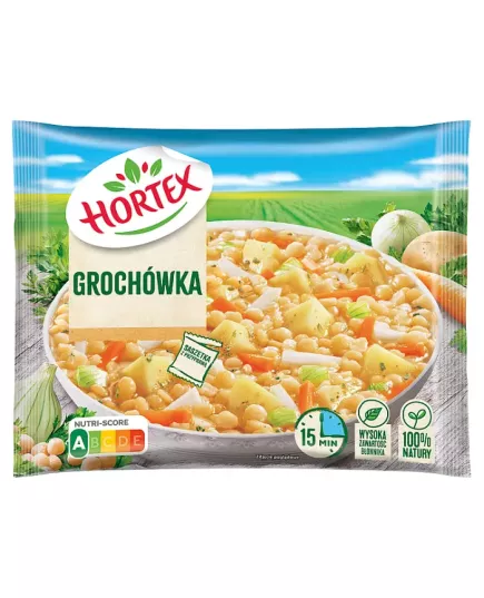 warzywa 99 % w zmiennych proporcjach: groch gotowany połówki 55 %, ziemniaki, marchew, SELER, cebula, przyprawy 1 % (sól, naturalne aromaty w tym aromat dymu wędzarniczego, cebula, majeranek, czosnek)