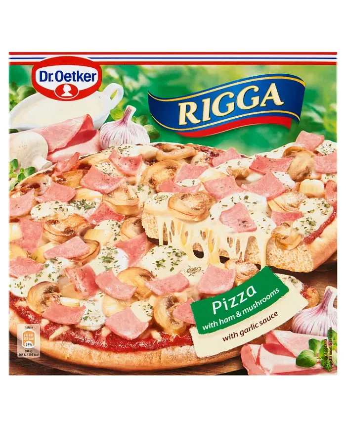 Dr. Oetker Rigga Pizza z szynką i pieczarkami z sosem czosnkowym 270 g