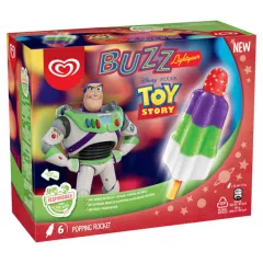 Dane produktowe Algida Buzz Lody wodne 330 ml (6 sztuk) Strzelająca rakieta Buzza Astrala teraz w formie orzeźwiającego wodnego loda ze strzelającymi cukierkami. Składniki: woda, cukier, syrop glukozowo-fruktozowy, glukoza, tłuszcze roślinne (kokosowy, shea), regulator kwasowości (kwas...