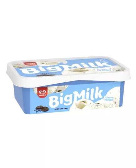 pełne MLEKO świeże (38%), odtworzone odtłuszczone MLEKO (26%), cukier, syrop glukozowo-fruktozowy, syrop glukozowy, oleje roślinne (kokosowy, palmowy, słonecznikowy), mąka PSZENNA, preparat serwatkowy (MLEKO), ŚMIETANKA (0,6%), tłuszcz MLECZNY, kakao, emulgator (mono- i diglicerydy kwasów tłuszczowych), stabilizatory (guma guar, mączka chleba świętojańskiego, karagen), aromaty (w tym MLEKO), JAJA w proszku, barwnik (węgiel roślinny), sól, substancja spulchniająca (węglany amonu), regulator kwasowości (kwas cytrynowy)