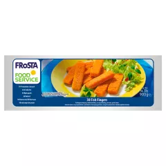 Dane produktowe FRoSTA Foodservice Paluszki rybne 900 g (30 x 30 g) Paluszki rybne z soczystych filetów z ryb białych, w chrupiącej panierce, wstępnie podsmażone. Składniki: filet z RYB białych (A - mintaj, B - czarniak, D - morszczuk, K - miruna, patrz nadruk z boku kartonika) (57%),...