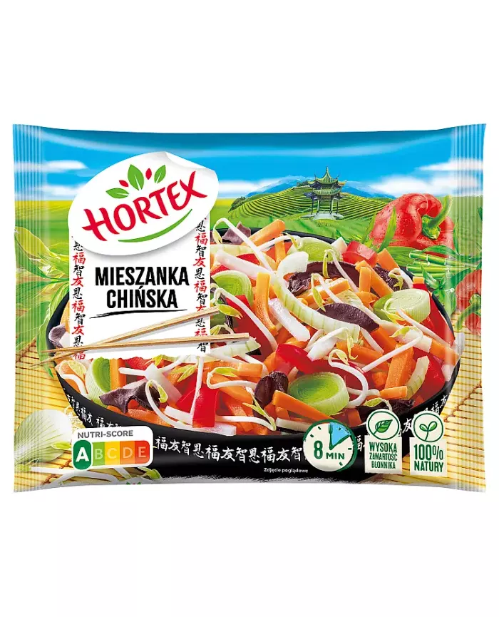warzywa 80 % w zmiennych proporcjach: marchew, kiełki fasoli Mung, papryka, por, cebula, pędy bambusa 10 %, grzyby mun 10 %