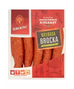 Dane produktowe Sokołów Kiełbasa brocka Składniki: mięso 81% (w tym: mięso wieprzowe 69%, mięso z kurczaka 12%), woda, sól, przyprawy, aromaty, regulator kwasowości: kwas cytrynowy, stabilizatory: trifosforany, difosforany, wzmacniacz smaku: glutaminian monosodowy, przeciwutleniacz:...