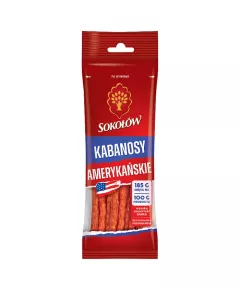 Dane produktowe Sokołów Kabanosy amerykańskie 100 g Dla tych, co kochają smak! Extra kruche Do pracy Na imprezę Do filmu Do szkoły Nad morze W góry Na biwak Gdziekolwiek chcesz Składniki: mięso wieprzowe, substancja żelująca: alginian sodu, sól, przyprawy, regulator kwasowości: mleczan...