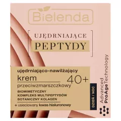 Dane produktowe Bielenda Ujędrniające Peptydy 40+ Ujędrniająco-nawilżający krem przeciwzmarszczkowy 50 ml Ujędrniająco-nawilżający krem przeciwzmarszczkowy na dzień i na noc dla cery dojrzałej, wrażliwej, z pierwszymi oznakami starzenia. Pełen ultraskutecznych, wielofunkcyjnych peptydów...