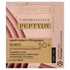 Dane produktowe Bielenda Ujędrniające Peptydy 50+ Ujędrniająco-liftingujący krem przeciwzmarszczkowy 50 ml Ujędrniająco-liftingujący krem przeciwzmarszczkowy na dzień i na noc dla cery dojrzałej, wrażliwej, z oznakami wiotczenia. Pełen ultraskutecznych, wielofunkcyjnych peptydów krem...