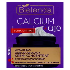 Dane produktowe Bielenda Calcium +Q10 70+ Głęboko odżywczy krem przeciwzmarszczkowy dzień 50 ml Skoncentrowany, głęboko odżywczy krem przeciwzmarszczkowy na dzień dla cery dojrzałej, wrażliwej, z utrwalonymi zmarszczkami. Bogaty, nasycony wapniem i liposomami Q10 krem spowalnia procesy...