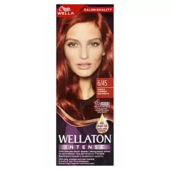 Dane produktowe Wella Wellaton Intense Krem koloryzujący ognista czerwień 6/45 100 % pokrycia siwych włosów i intensywności koloru przez 8 tygodni Wzbogacony o miliony pigmentów, które wnikają głęboko we włosy, nasz kolor zapewnia intensywne i długotrwałe rezultaty. Nasza formuła z 4 głęboko...