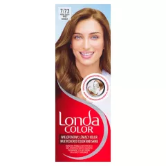 Dane produktowe Londa Color Farba do trwałej koloryzacji jasny złoty brąz 7/73 Technologia Color Blend która łączy różne, bogate w pigmenty tony jednego koloru, nadaje Twoim włosom wielotonowy kolor idealny dla Ciebie. Zaawansowany balsam „Długotrwały Kolor" z olejkiem kokosowym odżywia włosy...