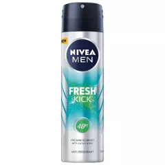 Dane produktowe Nivea MEN Fresh Kick Antyperspriant DLA Mężczyzn 150 ml Odkryj nowe uderzenie silnej świeżości: NIVEA MEN FRESH KICK. Lekka formuła naładowana wodą z kaktusa łączy natychmiastowo odświeżoną skórę z 48-godzinną ochroną przed poceniem. Uderzenie mocnej świeżości i niezawodna...