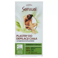 Dane produktowe Joanna Sensual Plastry do depilacji ciała włosy mocne 12 sztuk i Tubka z oliwką łagodzącą 10 ml Plastry do depilacji Sensual to wybór milionów kobiet. Nowa, udoskonalona receptura oraz większa powierzchnia wosku to szybsza i dokładniejsza depilacja włosów mocnych. Dzięki...