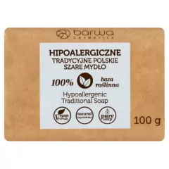 Barwa Hipoalergiczne tradycyjne polskie szare mydło 100 g Tradycyjne Polskie Szare Mydło to produkt naturalny i hipoalergiczny, stworzony na bazie roślinnej. Idealny dla osób z wrażliwą skórą. Nie zawiera sztucznych barwników, kompozycji zapachowej i składników pochodzenia zwierzęcego....