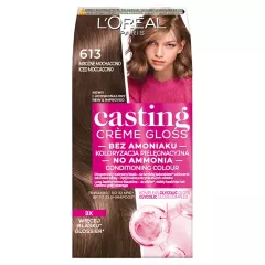 Dane produktowe L'Oreal Paris Casting Creme Gloss Farba do włosów 613 mroźne mochaccino Koloryzacja pielęgnacyjna - bez amoniaku Przepyszne i lśniące refleksy. Trwałość do 28 myć Mieniący się kolor o przepysznych, lśniących refleksach - Formuła kremu bez amoniaku zapewnia optymalne pokrycie...