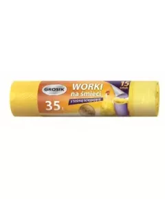 Worki na śmiecie z taśmą ściągającą. Pojemność 35L Opakowanie zawiera 15 sztuk.