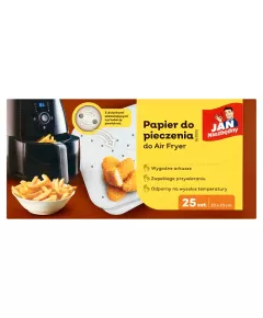 Dedykowany papier do pieczenia do urządzenia Air Fryer (frytkownicy beztłuszczowej). Gotowe, pocięte arkusze z dziurkami ułatwiającymi cyrkulację powietrza. Jest odporny na wysokie temperatury i zapobiega przywieraniu. Zmniejsza ilość resztek jedzenia i plam, dzięki czemu czyszczenie koszyka...