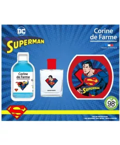 Superman zestaw woda toaletowa 50ml + Żel pieniący 3w1 300ml + Pudełko na przekąski  Woda toaletowa: zapach drzewno-cytrusowy, 94% składników pochodzenia naturalnego. Żel pieniący 3w1: Ciało, Włosy, Kąpiel Oczyszcza skórę i włosy dzieci. Może być stosowany jako płyn do kąpieli. 98%...