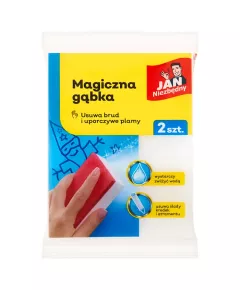 Dane produktowe Jan Niezbędny Magiczna gąbka 2 sztuki Witam! Nazywam się Jan Niezbędny. Polecam wyjątkową magiczną gąbkę: - usuwa najbardziej uporczywe plamy z różnych powierzchni: ścian, podłóg, drzwi, glazury, zlewu, wanny, a także ram okien, mebli ogrodowych - wyciera jak "gumka myszka"...