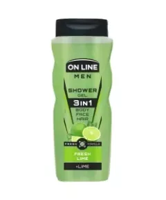 Żel 3w1 ON LINE MEN Fresh Lime 410 ml Męski żel pod prysznic 3w1 do pielęgnacji twarzy, włosów i ciała. Skuteczna formuła pomaga zachować codzienną świeżość. Intensywna, cytrusowa nuta zapachowa. Sposób użycia: nanieść niewielką ilość produktu na wilgotne włosy...