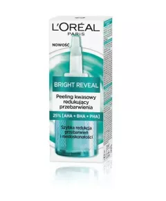 Peeling kwasowy redukujący przebarwienia Bright Reveal od L’Oréal Paris szybko redukuje przebarwienia i niedoskonałości. Formuła peeling'u zawiera: - Alfa-hydroksywasy [AHA] - pomagają wyrównać teksturę skóry; - Beta-hydroksykwasy [BHA] - pomagają zwęzić pory i zredukować niedoskonałości; -...