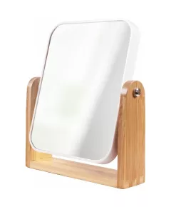 Stojące obrotowe lusterko z podstawą z drewna bambusowego Dwustronne: obraz rzeczywisty+dwukrotne powiększenie Wymiary bez ramki: 14,5x17,5 cm z ramką: 15x18 cm