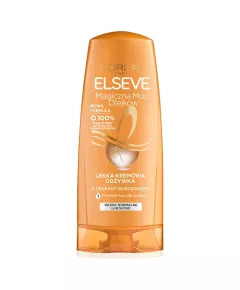 Dane produktowe L'Oreal Paris Elseve Magiczna moc olejków Lekka kremowa odżywka 200 ml Siła nauki dla nadzwyczajnie pięknych włosów Specyfika włosów normalnych i suchych Włosy normalne i suche są często pozbawione życia, szorstkie i matowe. Potrzebują odżywienia, ale bez efektu obciążenia,...