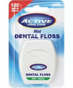Beauty Formulas Active Oral Care Nić dentystyczna miętowa woskowana 100m jest super cienka o płaskim przekroju, miętowa, woskowana. Dzięki swojej budowie nić z łatwością wsuwa się najbardziej ciasne przestrzenie międzyzębowe. Nić odporna jest na strzępienie i zrywanie.