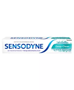 Dane produktowe Sensodyne Deep Clean Pasta do zębów z fluorkiem 75 ml Jeśli podczas spożywania gorących, zimnych, słodkich i kwaśnych pokarmów, a nawet szczotkowania zębów odczuwasz krótki, przenikliwy ból, może to oznaczać, że Twoje zęby są nadwrażliwe. Pasta do zębów z fluorkiem Sensodyne...