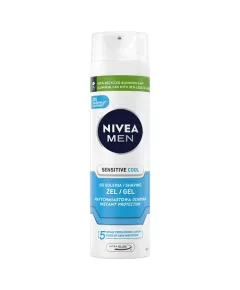 Dane produktowe Nivea MEN Chłodzący ŻEL DO Golenia Sensitive Cool 200 ml Chłodzący żel do golenia NIVEA MEN Sensitive Cool to wyjątkowa, bezalkoholowa* formuła z rumiankiem, która natychmiastowo chroni przed 5 oznakami podrażnionej goleniem skóry: pieczeniem, zaczerwienieniem, uczuciem...