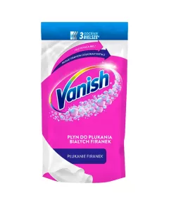 Dane produktowe Vanish Płyn do płukania białych firanek 125 ml VANISH Płyn do płukania białych firanek 125 ml Zalety produktu: • przywraca firankom biel • dba o włókna • usztywnia je i nadaje doskonały kształt na dłużej • nie zawiera chloru • firanki bielsze o 3 odcienie* • bezpieczny dla...
