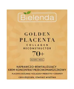 Dane produktowe Bielenda Golden Placenta 70+ Naprawczo-rewitalizujący krem-koncentrat przeciwzmarszczkowy 50 ml Naprawczo - rewitalizujący krem - koncentrat przeciwzmarszczkowy na dzień i na noc zalecany dla wieku: 70+ Krem zapewnia suchej, cienkiej, bardzo dojrzałej skórze intensywne...