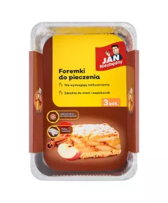Dane produktowe Jan Niezbędny Foremki do pieczenia aluminiowe 3 sztuki Witam! Nazywam się Jan Niezbędny. Polecam wyjątkowe foremki do pieczenia: - upieczesz w nich dowolnie duże ciasto, np. sernik, szarlotkę czy makowiec, a także mięsną lub warzywną zapiekankę. - nie wymagają smarowania...
