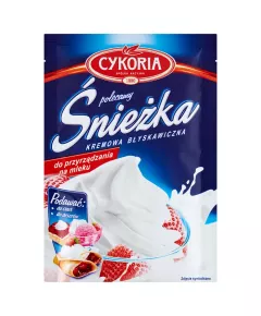 Dane produktowe Cykoria Śnieżka kremowa błyskawiczna 60 g Składniki: cukier, preparat białkowo-tłuszczowy (tłuszcze roślinne całkowicie utwardzone: palmowy, kokosowy; MLEKO w proszku odtłuszczone, emulgator: E 472a; syrop glukozowy), skrobia ziemniaczana modyfikowana, MLEKO w proszku...