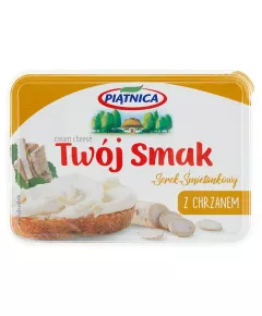 Dane produktowe Piątnica Twój Smak Serek śmietankowy z chrzanem 135 g Składniki: serek śmietankowy (MLEKO pasteryzowane i ŚMIETANA), chrzan 10 %, sól, białka MLEKA Dodatki Marka Piątnica Dodatkowe informacje Przechowywanie Nie zamrażać. Przechowywać w temperaturze...