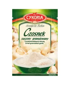 Dane produktowe Cykoria Aromatyczna Kuchnia Czosnek suszony granulowany 20 g Czosnek jest jednym z podstawowych warzyw stosowanych w kuchni śródziemnomorskiej. Ma intensywny zapach i ostry smak. Idealnie nadaje się do potraw mięsnych, zup, sosów i marynat. Jest doskonałym dodatkiem do surówek...