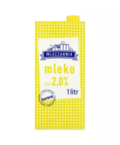 Dane produktowe Mleczarnia Mleko UHT 2,0% 1 l Składniki: zawartość tłuszczu 2,0% Dodatki Marka Dodatkowe informacje Kupując karton Tetra Pak z logo FSC (Forest Stewardship Council) wspierasz odpowiedzialne zarządzanie lasami na całym świecie. Przechowywanie...